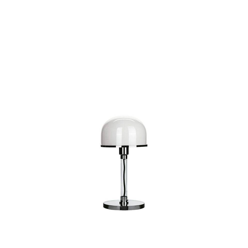 Carl Jacob Jucker was born in Zurich in 1902. After completing a four-year apprenticeship as a silversmith at the Zurich School of Applied Arts in 1922, he went to the Weimar Bauhaus as a student. In 1922 he began training in the metal workshop. Here he met Wilhelm Wagenfeld, with whom he jointly developed the glass version of the Bauhaus lamp in 1923. In his projects he preferred to use technical materials such as glass and metal, mirrored light bulbs and reflectors. In his first year in the metal workshop, he worked on prototypes of a geometrically simple and functional table lamp. The lamp is made up of the characteristic geometric elements of the Bauhaus: circular base plate, cylindrical stem, pull switch with metal ball and lampshade in opal glass or Jena glass in the shape of a 5/8 sphere. Jucker is considered to be one of the first Bauhaus students to design glass table lamps. He died in 1997 in Schaffhausen, Switzerland.