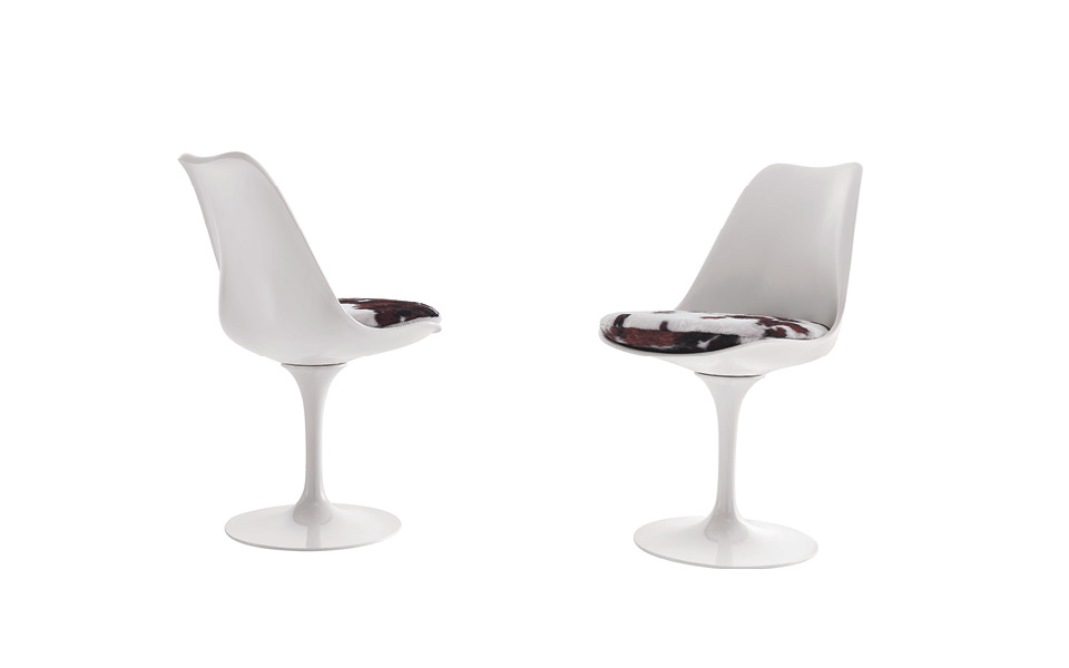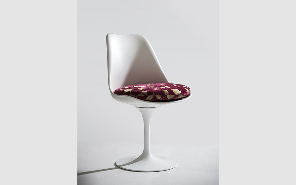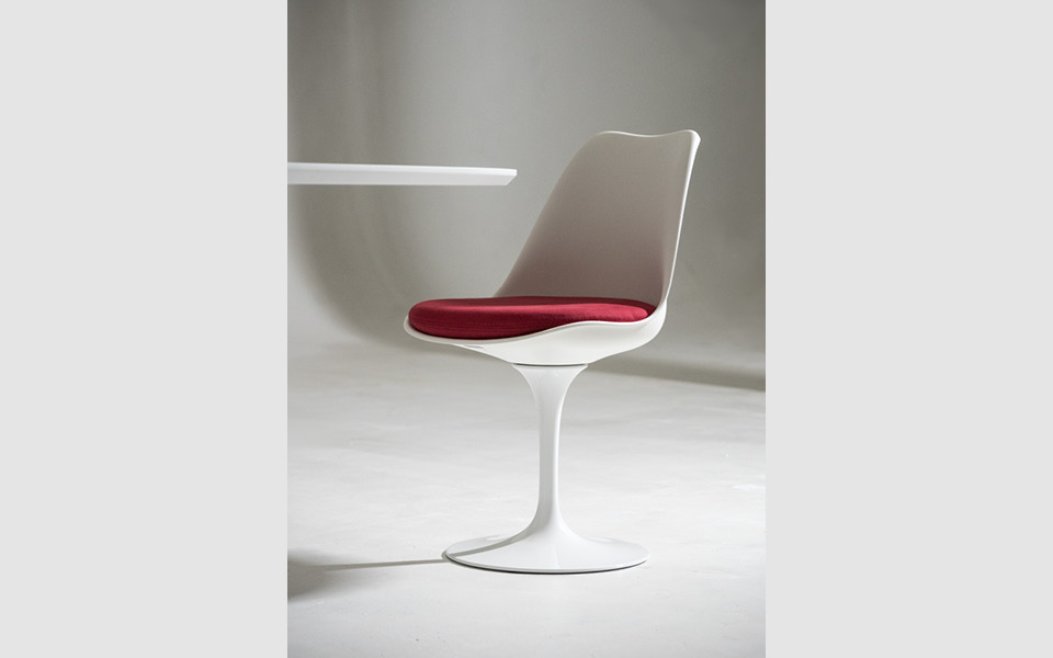 From this aesthetic necessity the Pedestal line was born, which includes, in addition to the Tulip Chair by Saarinen, also the Saarinen Oval and Round Tables and the Saarinen ottoman: no more legs that inelegantly overlap on each other, but a single pedestal that supports and gives balance to chairs and tables.