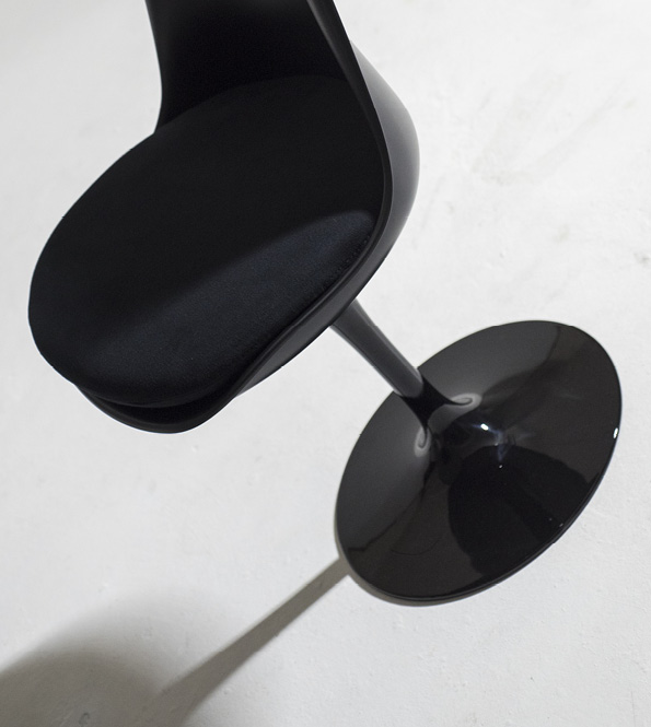Swivel chair with cast aluminium pedestal painted white or black. Seat shell in white or