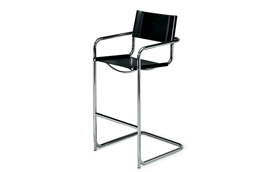 El taburete Stam nace como la evolución natural de la silla homónima, de la que retoma fielmente el lenguaje formal y constructivo, adaptándolo a proporciones más esbeltas y estilizadas. La estructura está completamente realizada en tubo de acero, disponible con acabado cromado o pintado, mientras que la base tipo trineo se completa con discretos pies de goma. El asiento y el respaldo, estrictamente en cuero, contribuyen a definir la esencia de una pieza atemporal. El diseño original lleva la firma de Mart Stam, pionero del modernismo neerlandés. Fue él quien, en 1926, concibió la primera silla cantiléver utilizando simples tubos de metal y uniones en "L" tomadas del sector de instalaciones.