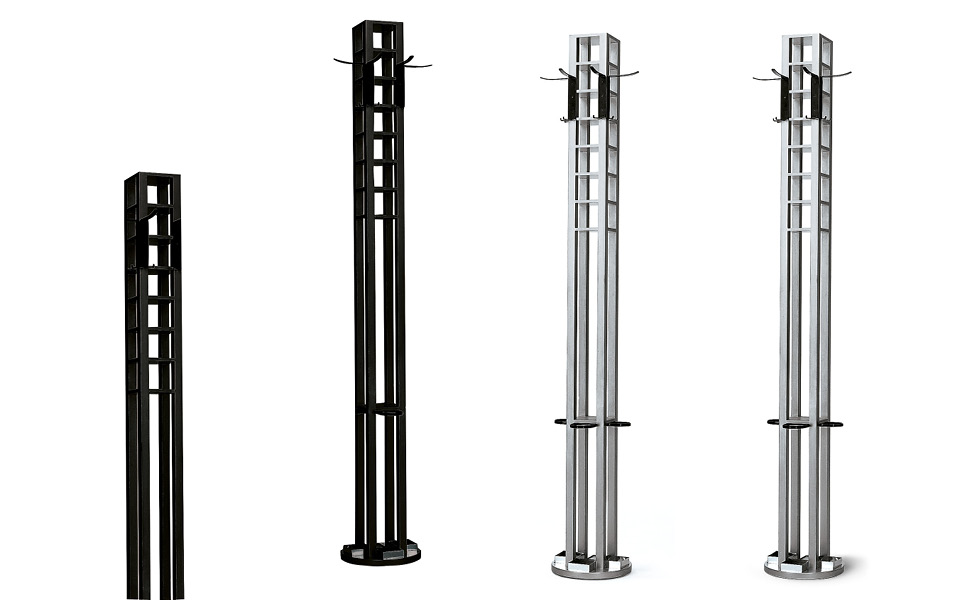 Perchero con estructura de fresno lacado poro abierto. Perchas de acero pintado negro.