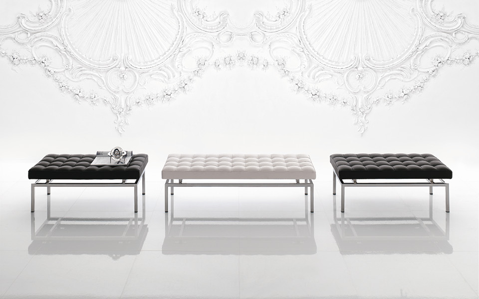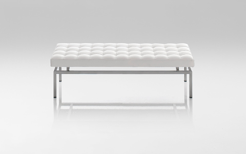 Le banc Boss est un élément qui enrichit une collection déjà précieuse. Ce banc rembourré à la grande pureté formelle laisse également s'exprimer la beauté de la matière des métaux, déclinés dans la structure en acier recouverte en polyuréthane et la base en tube en acier, choisis pour apporter des aspects de robustesse et de résistance avec des lignes simples et nettes.