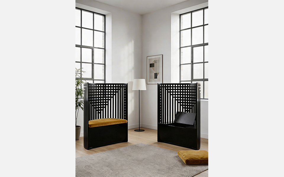 Un objet à forte présence sculpturale, alliant essentialisme formel, confort et fonctionnalité, pour définir l’espace avec une élégance intemporelle.
