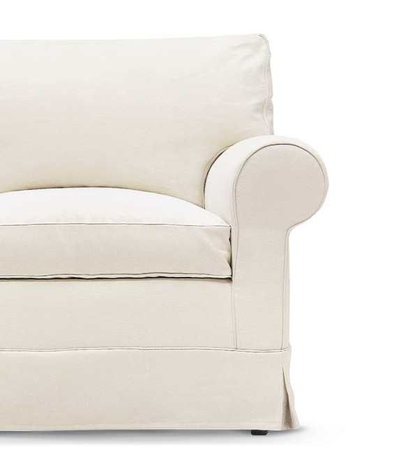 Coussins assise et dossier en duvet d’oie. Revêtement en tissu, déhoussable.