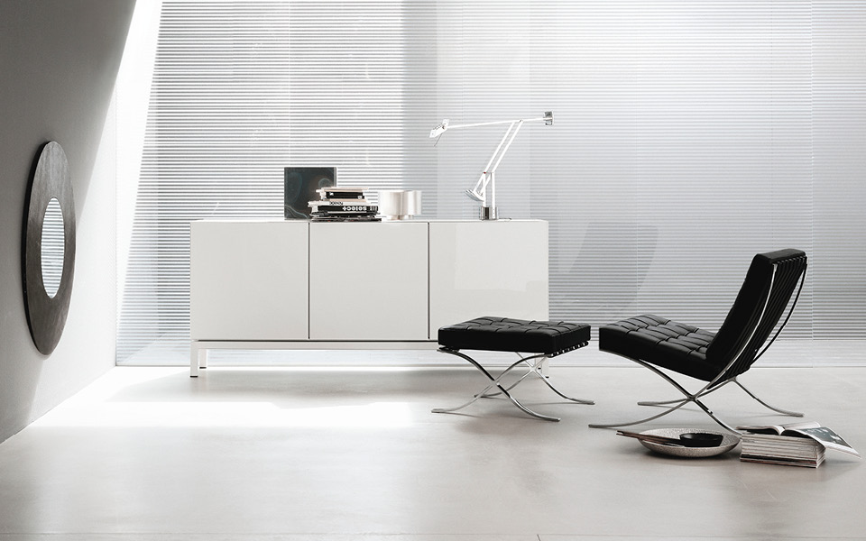 Ce tabouret fut dessiné pour le pavillon de Deutscher Werkbund au salon mondial de Barcelone de 1929. Le modèle est généralement appelé « Tabouret Barcelone ». Tout comme pour le fauteuil, le rembourrage à carrés est attribué à Lilly Reich. Ce tabouret fut initialement fabriqué par Berliner Metallgewerbe Joseph Müller. En 1931, la production passa à Bamberg Metallwerkstätten de Berlin.